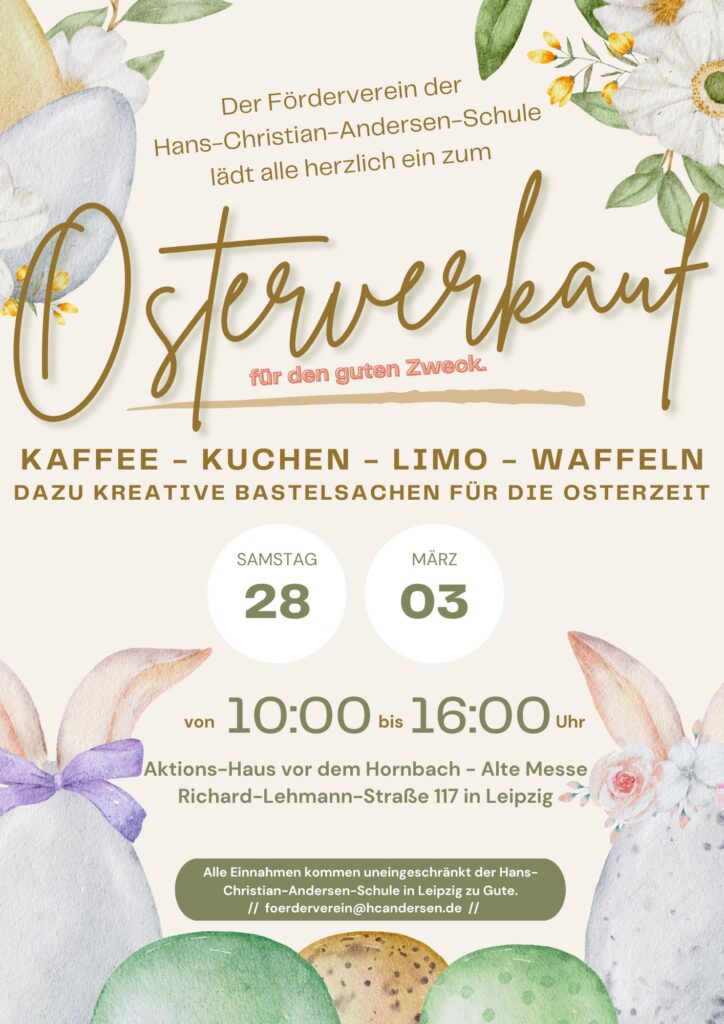 der Förderverein freut sich, euch zu einem besonderen Tag einzuladen! Am 28. März dürfen wir wieder das Aktionshäuschen vor dem Eingang des Hornbach-Marktes in der Richard-Lehmann-Straße 117 in Leipzig nutzen – und wir möchten euch alle herzlich einladen, bei uns vorbeizuschauen.